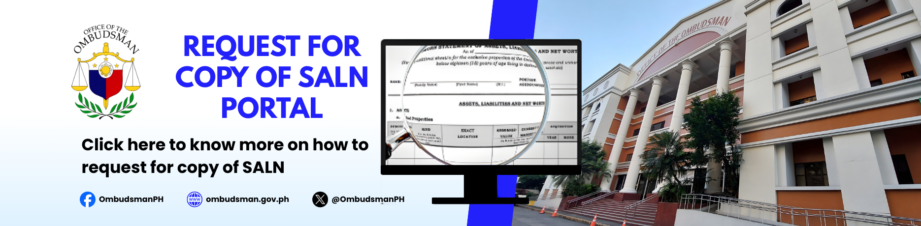 The Office of the Ombudsman has offices and assistance centers strategically located across the Philippines. Hover over a pin to view contact details.